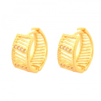 Brinco meia argola media zirconia cristal nas laterais liso no meio, prata com banho de ouro...
