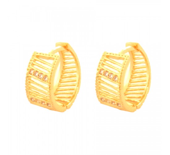 Brinco argola pequena lisa vazada com 2 filetes zirconia cristal. 9mm, rata. 350014..