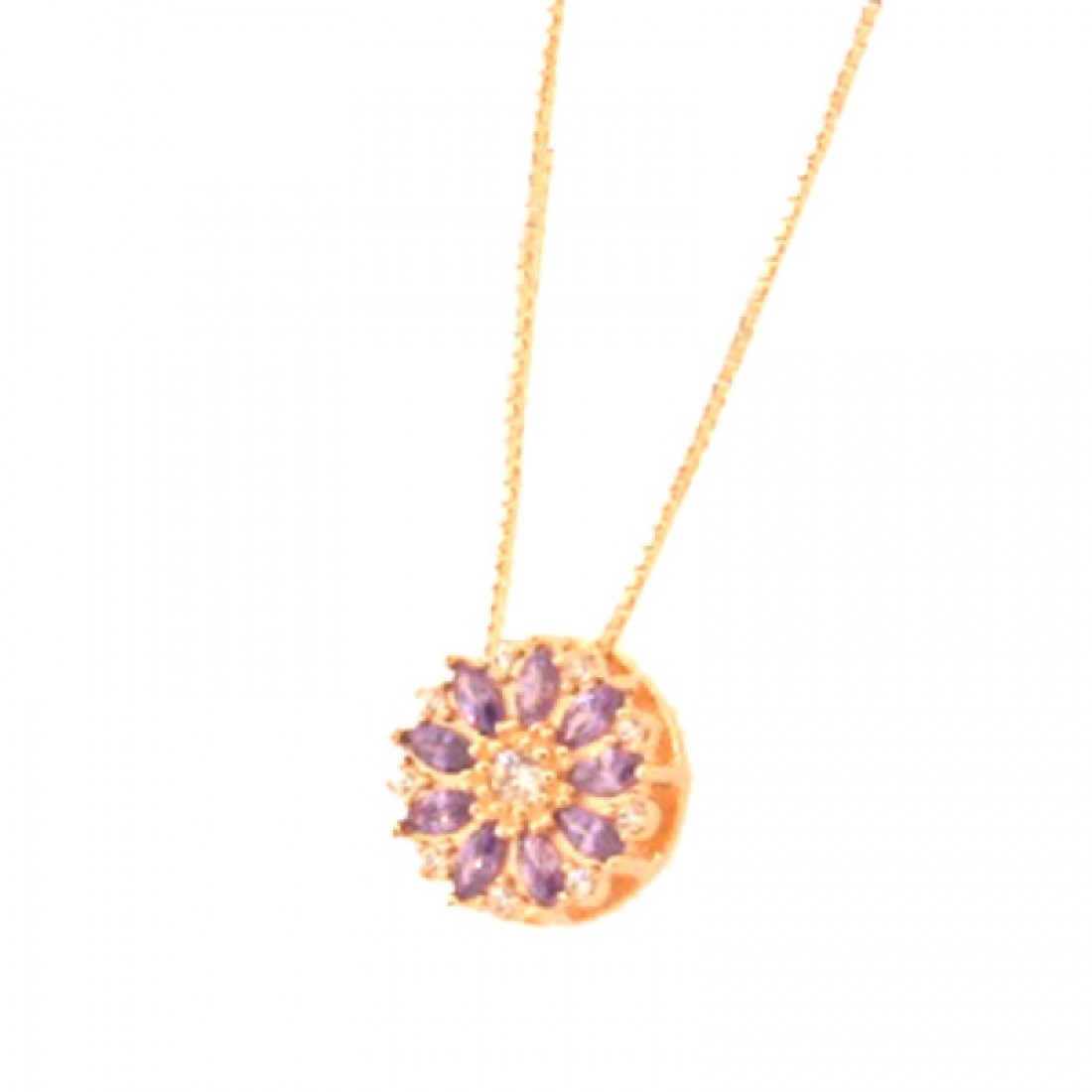 Colar flor navete lilas com miolo zirconia cristal, Prata. 361802..
