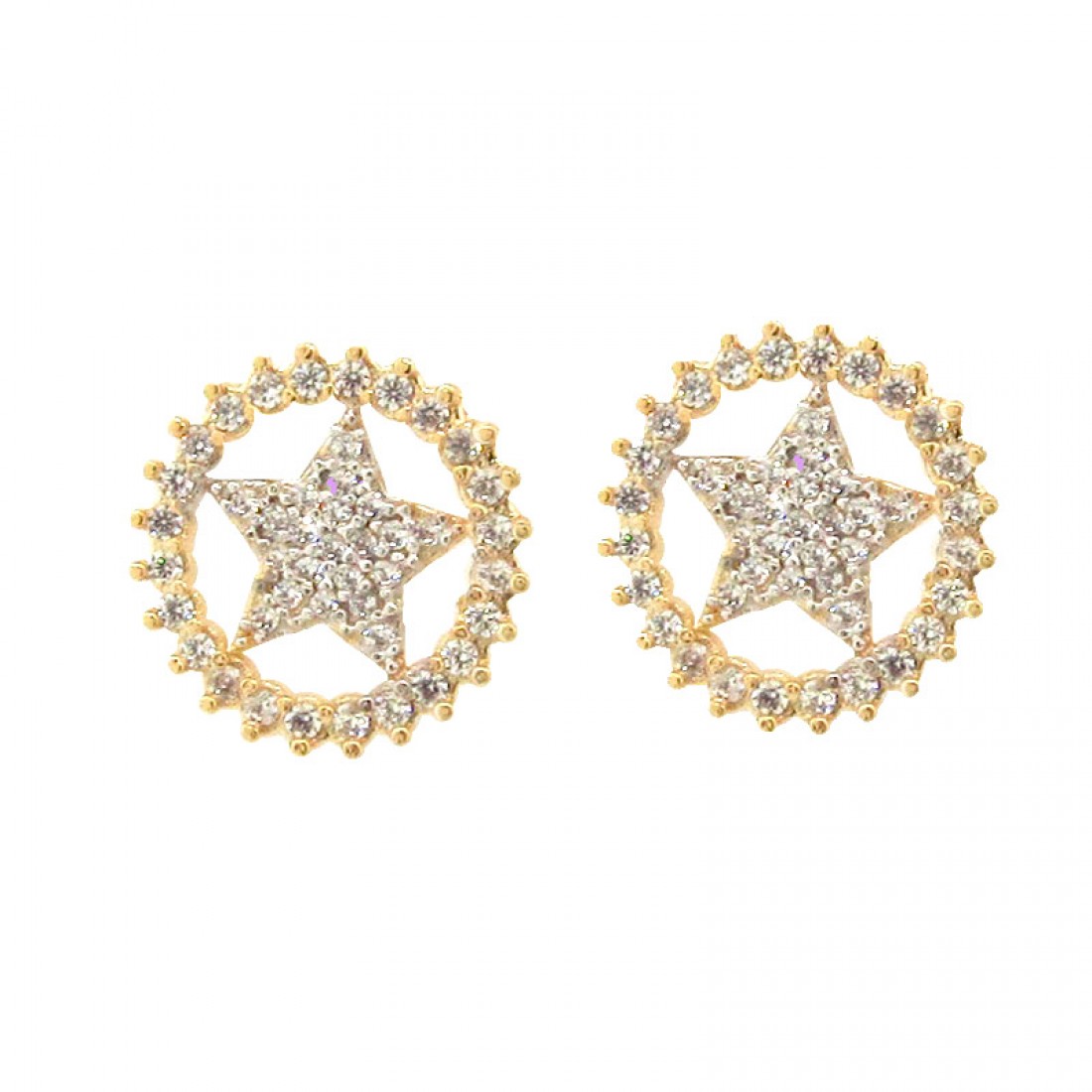 Colar estrela zirconia cristal com aro zirconia cristal em volta, prata com banho de ouro...