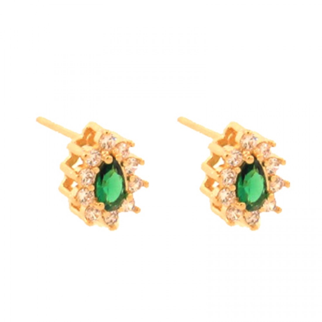 Colar gota pequena zirconia verde esmeralda no centro e cristal em volta, prata com banho de ouro...