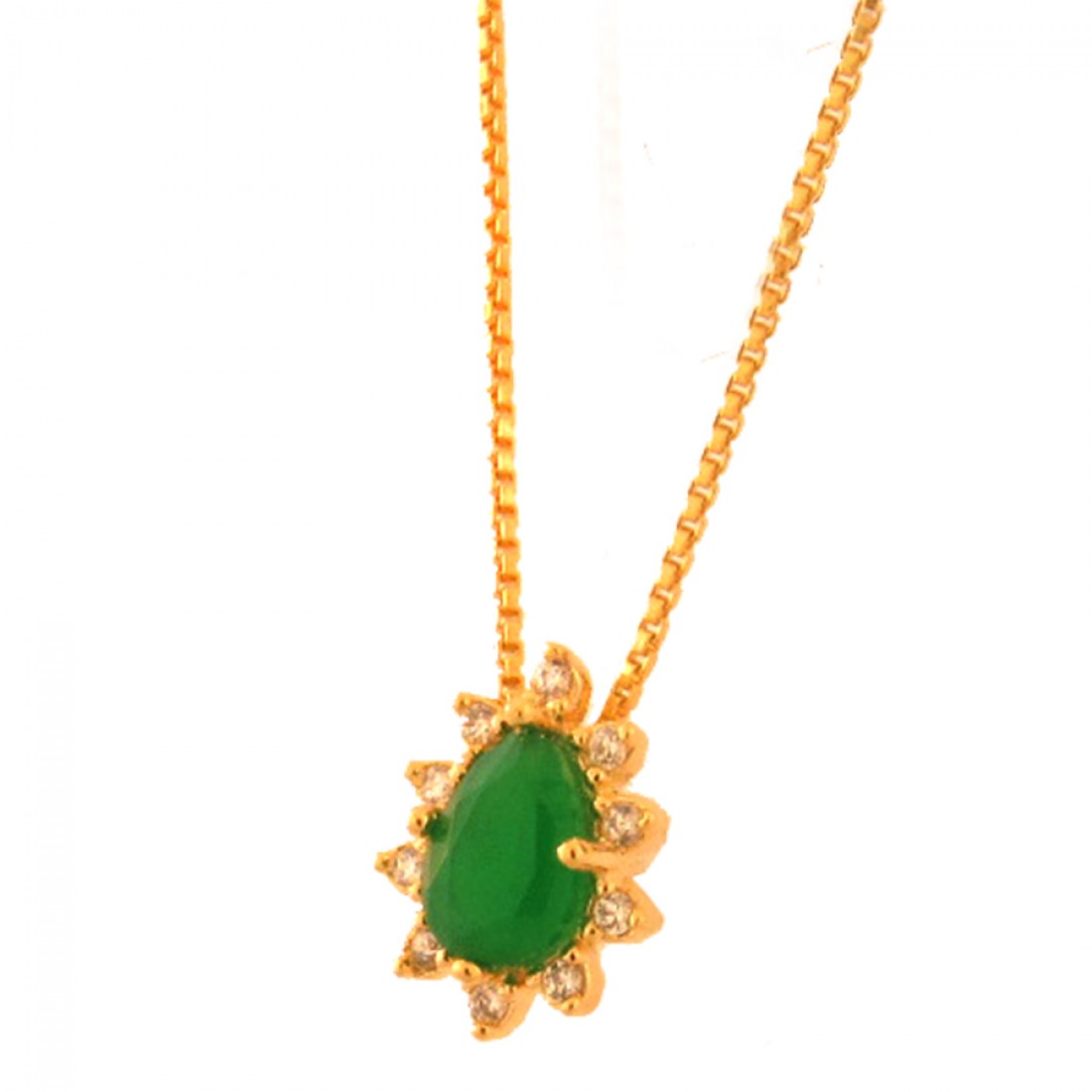 Colar gota verde esmeralda e zirconia cristal em volta, prata com banho de ouro. 1630058..