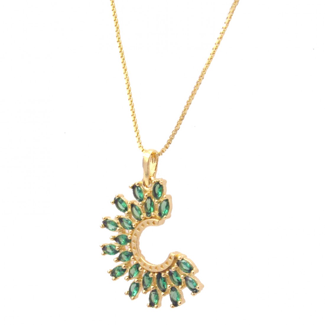 Brinco em C navete verde esmeralda, prata com banho d eouro.1530138..