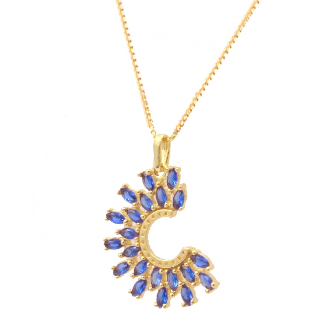 Brinco em C navete azul safira, prata com banho de ouro.1530132..