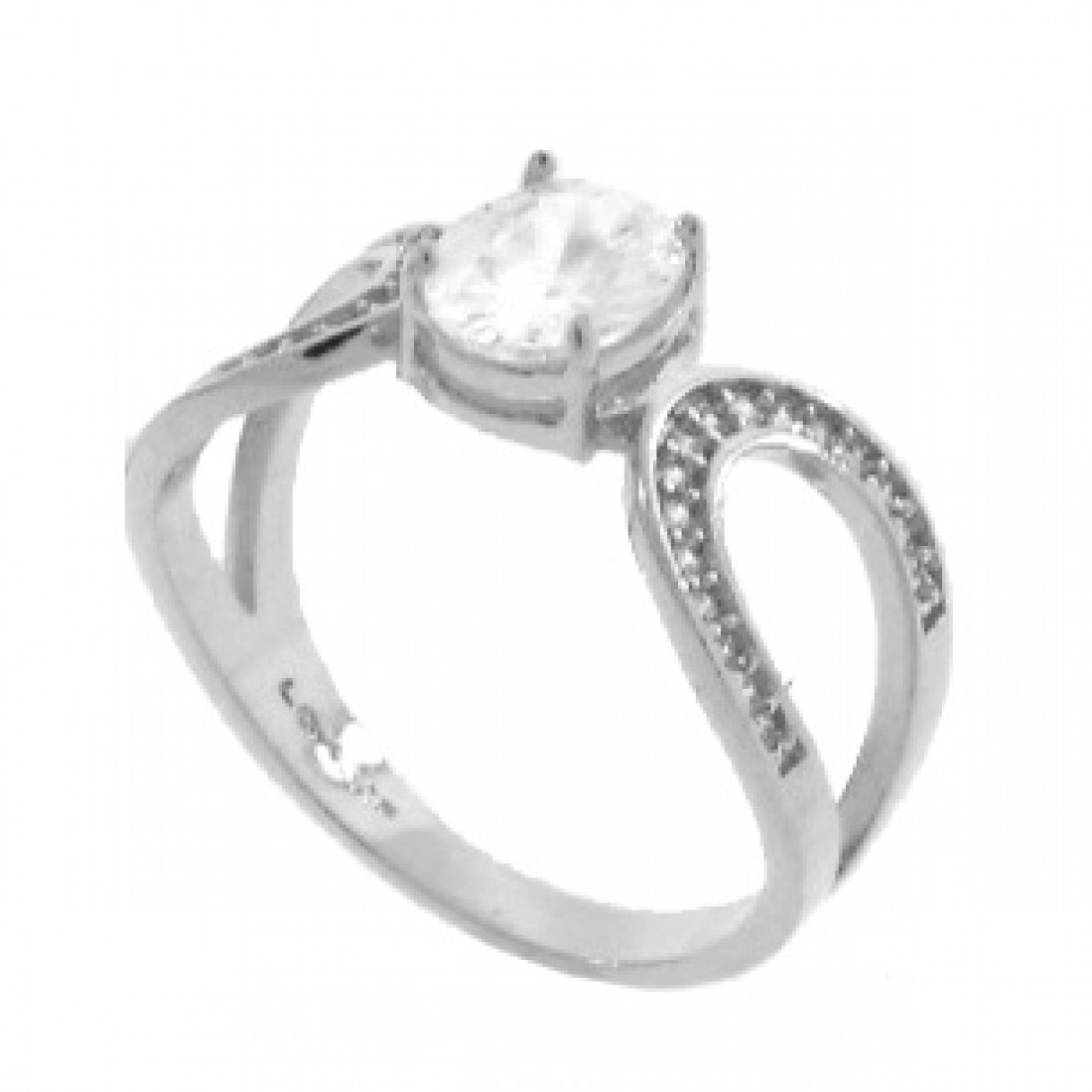 Anel solitario pedra oval vazado nas laterais com zirconia cristal, prata com banho de ouro...