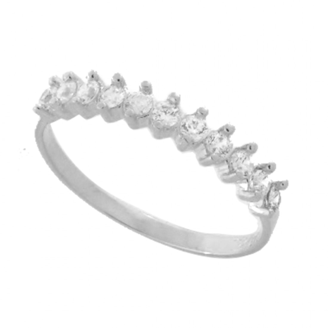 Anel meia alianca fina zirconia cristal, prata com banho de ouro. 140879..