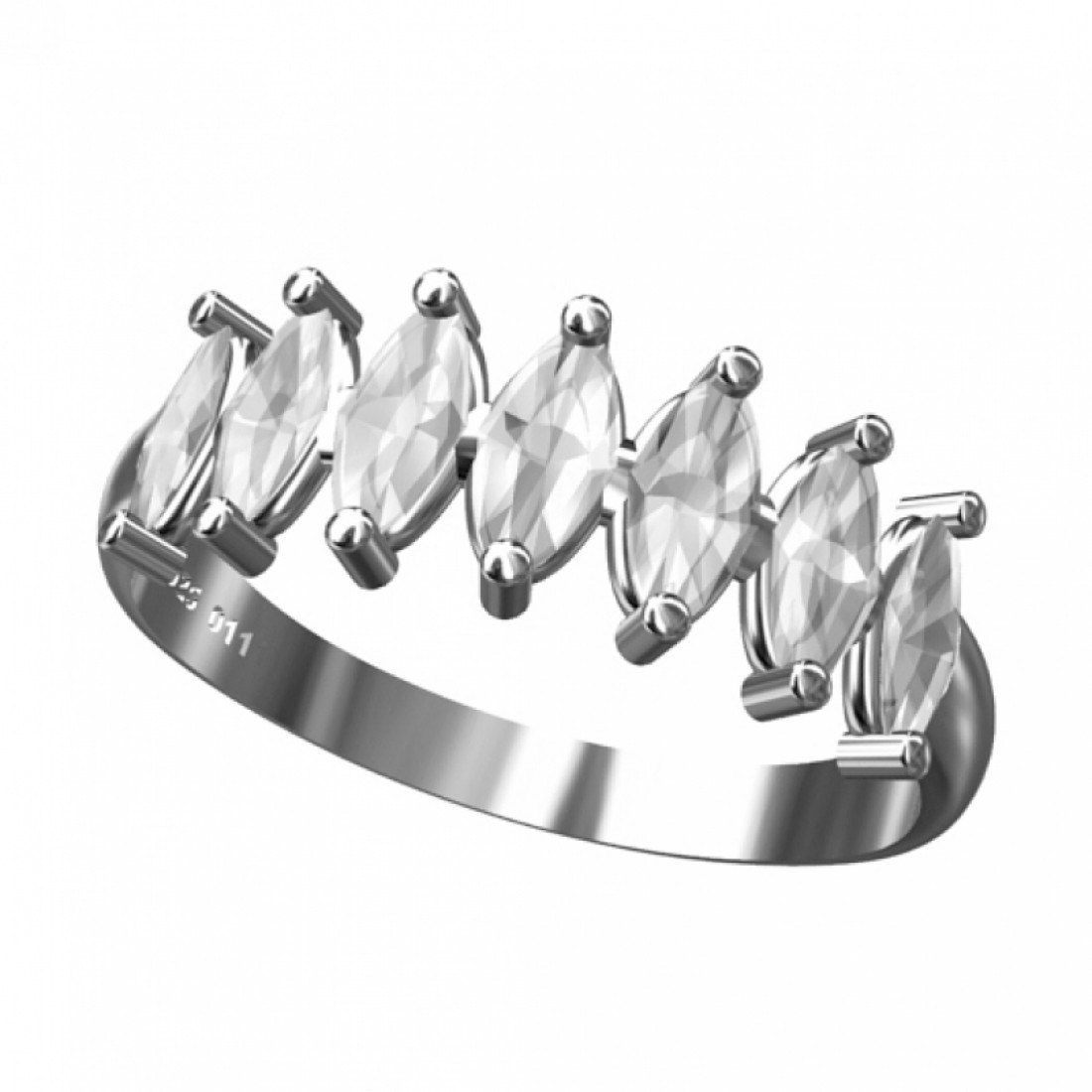 Anel 7 navetes cristais 2,5x5, prata com banho de ouro...