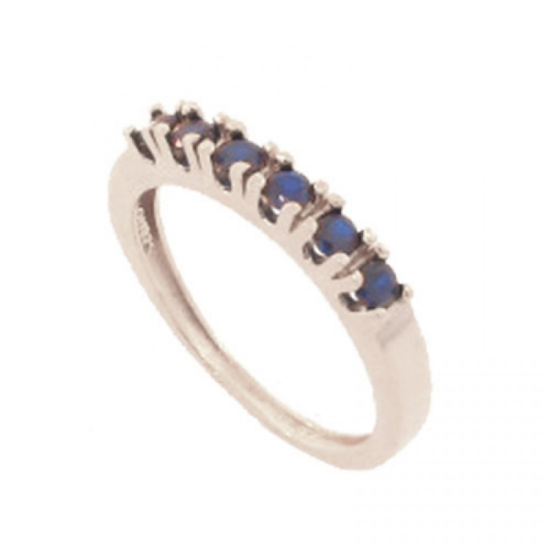 Anel meia alianca zirconia azul safira 2.5mm, prata com banho de ouro. 141368..