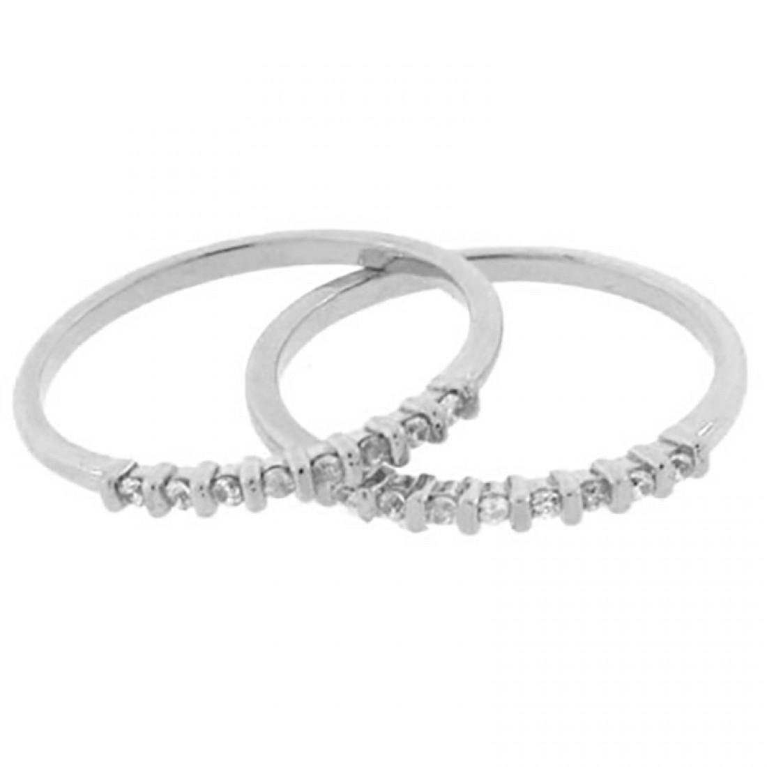 Anel aparador zirconia cristal com filetes entre elas, prata com banho de ouro...