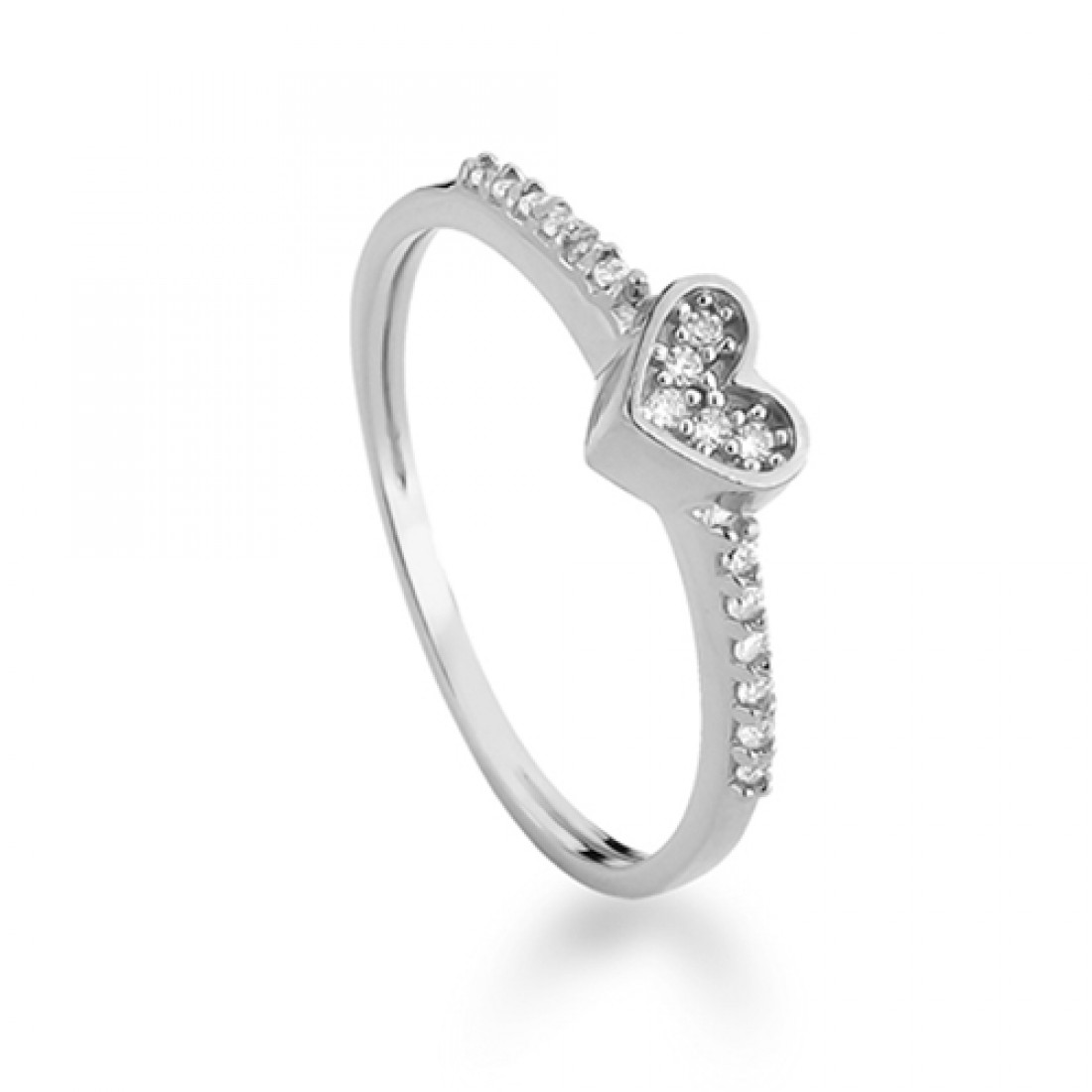 Anel chuveiro pequeno de coracao zirconia cristal, prata com banho de ouro. 140060..