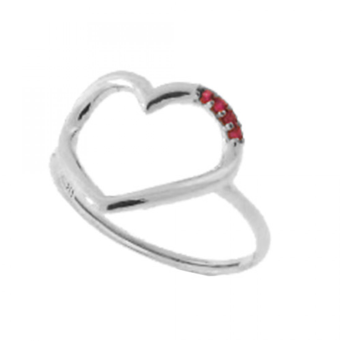 Anel coracao vazado liso com detalhe zirconia vermelha, prata com banho de ouro...