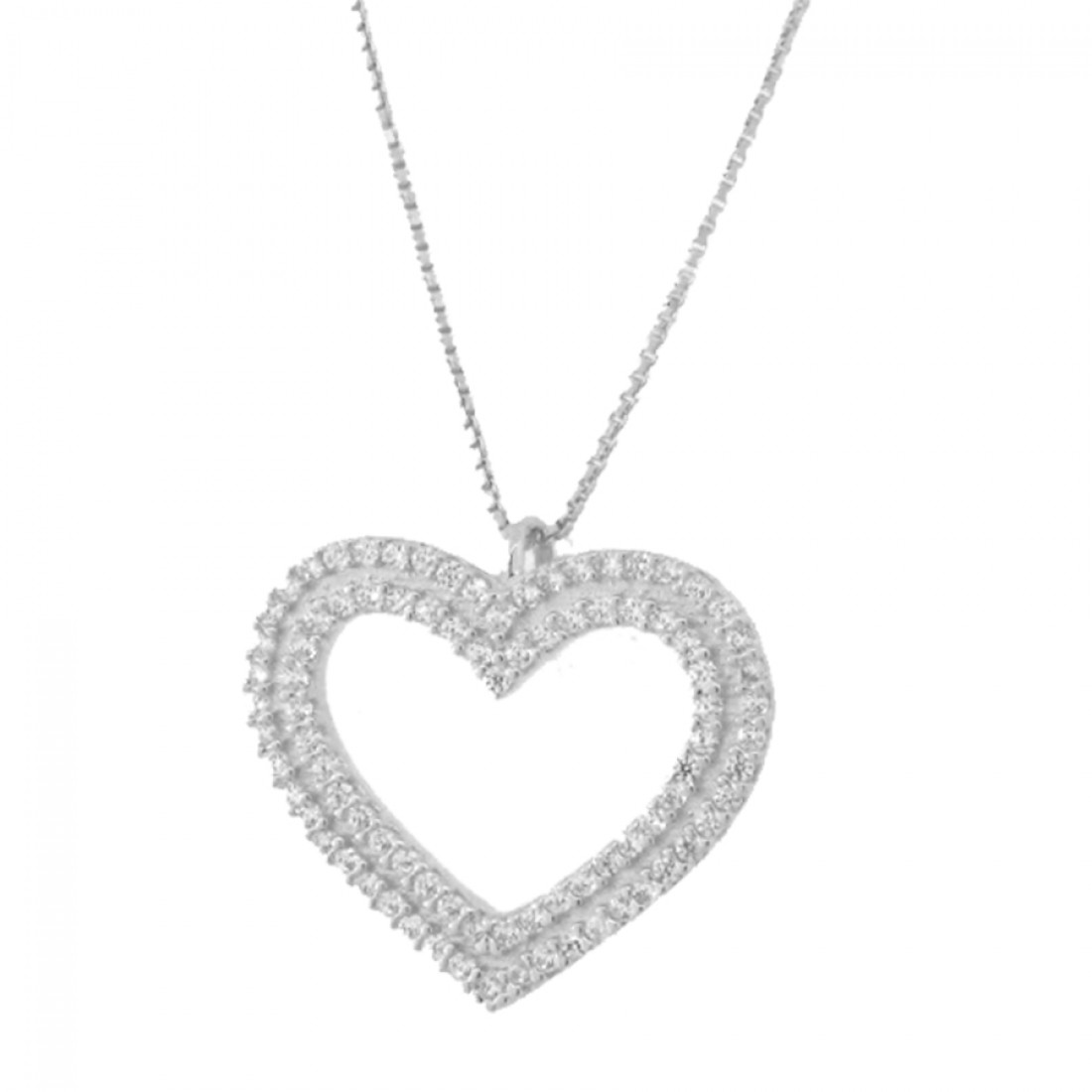 Colar coracao medio vazado com 2 fileiras zirconia cristal, prata com banho de ouro...