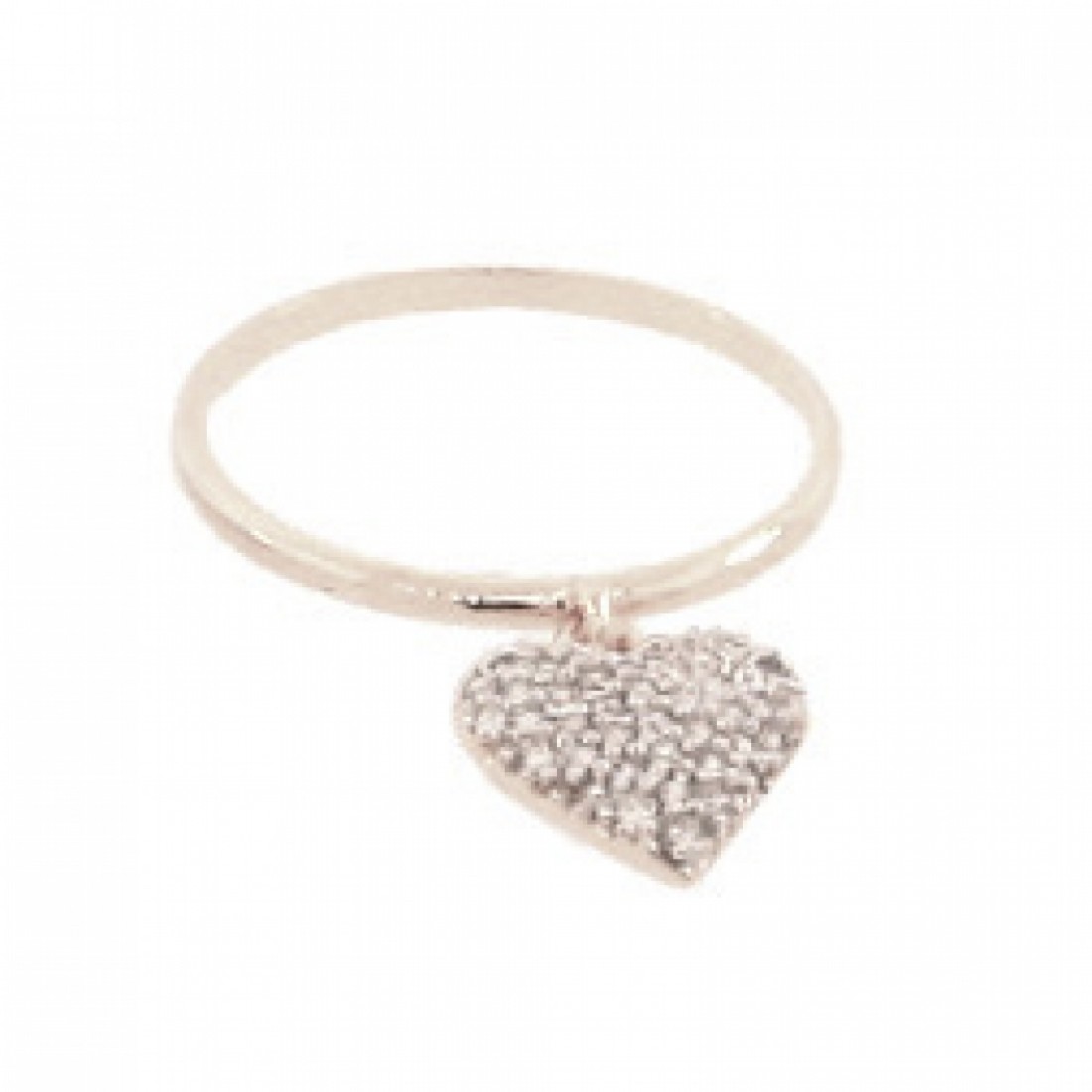 Anel coracao pendurado zirconia cristal e aro liso, prata com banho de ouro...