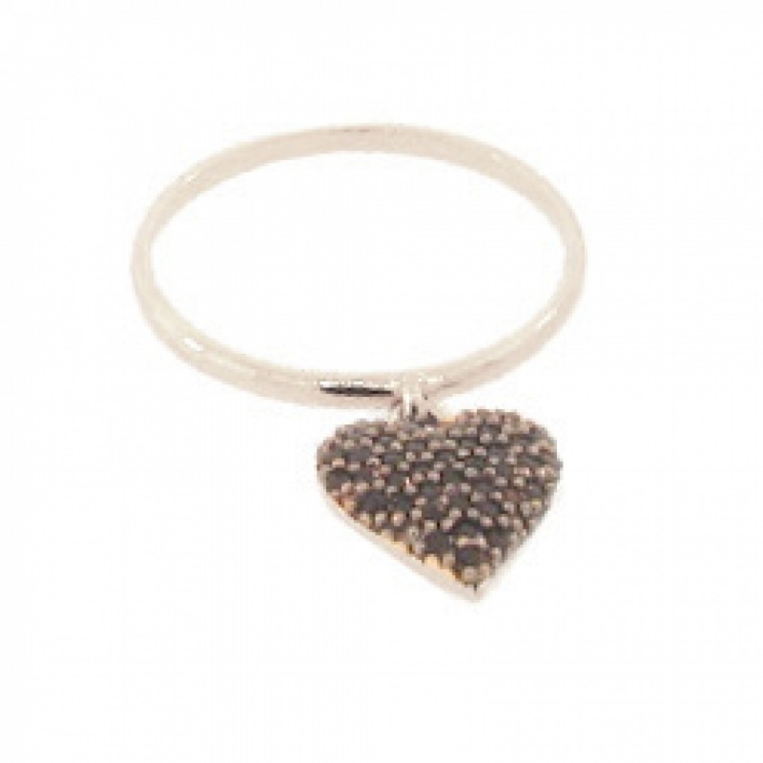 Anel coracao pendurado zirconia negra e aro liso, prata com banho de ouro...