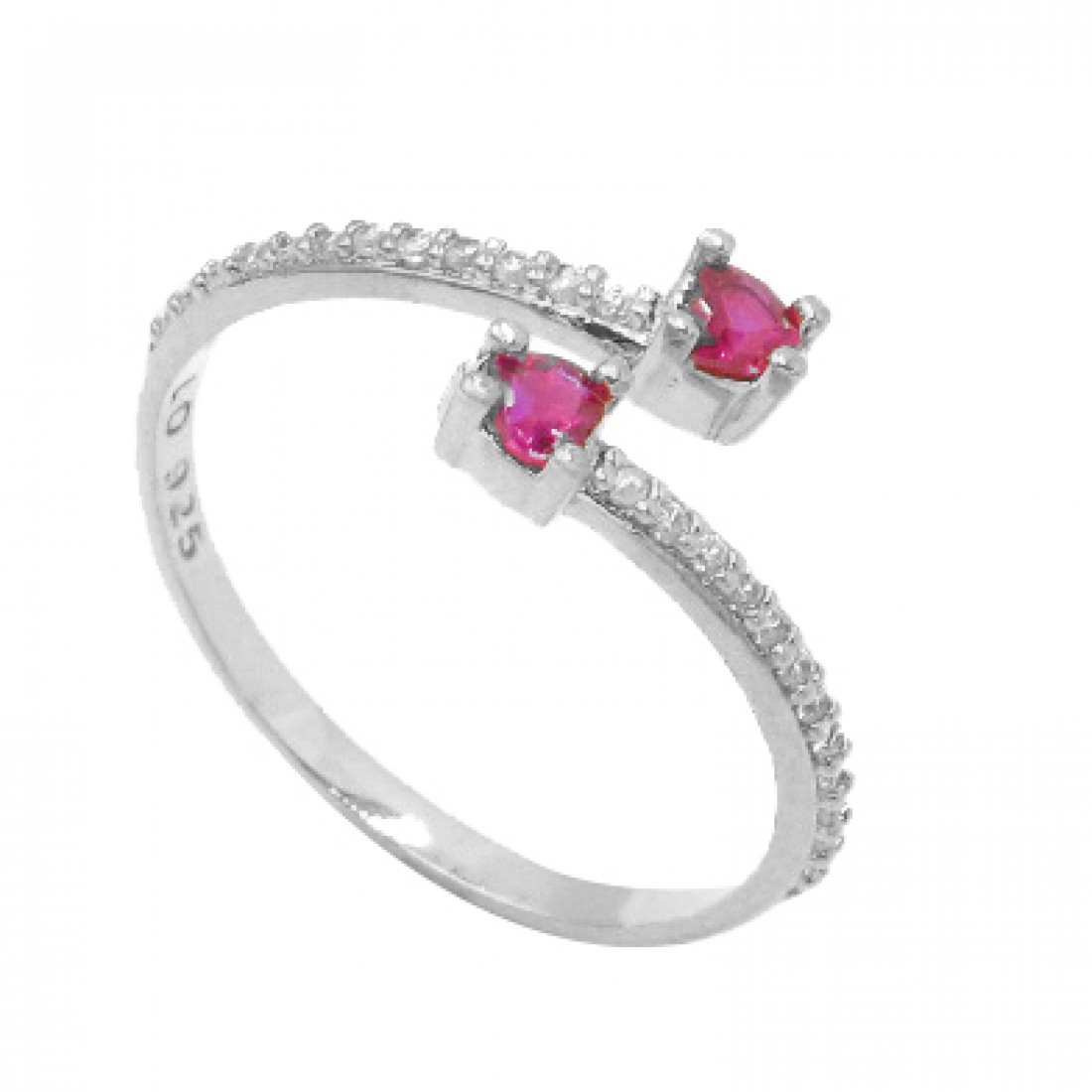 Anel volta zirconia branca e coracao vermelho rubi nas pontas, prata com banho de ouro. 1415229..