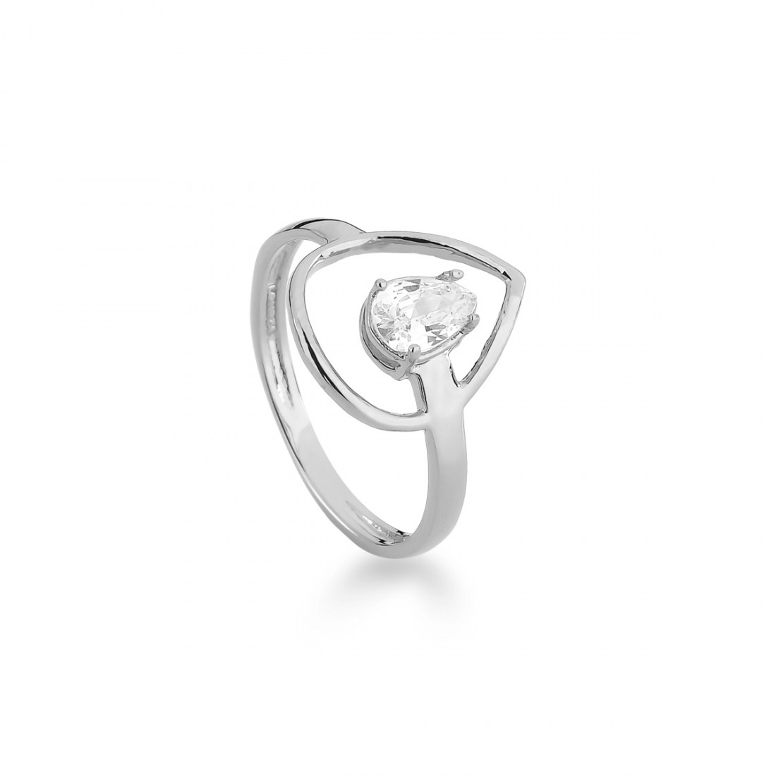 Anel gota vazada com gota cristal dentro lateral, prata com banho de ouro. 1415300..