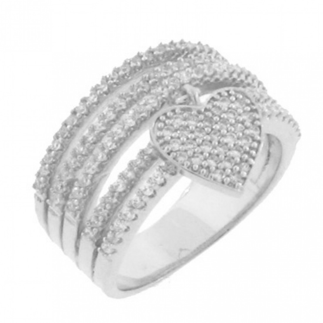 Anel 5 fios zirconia cristal com coracao zirconia cristal pendurado, prata com banho de ouro...