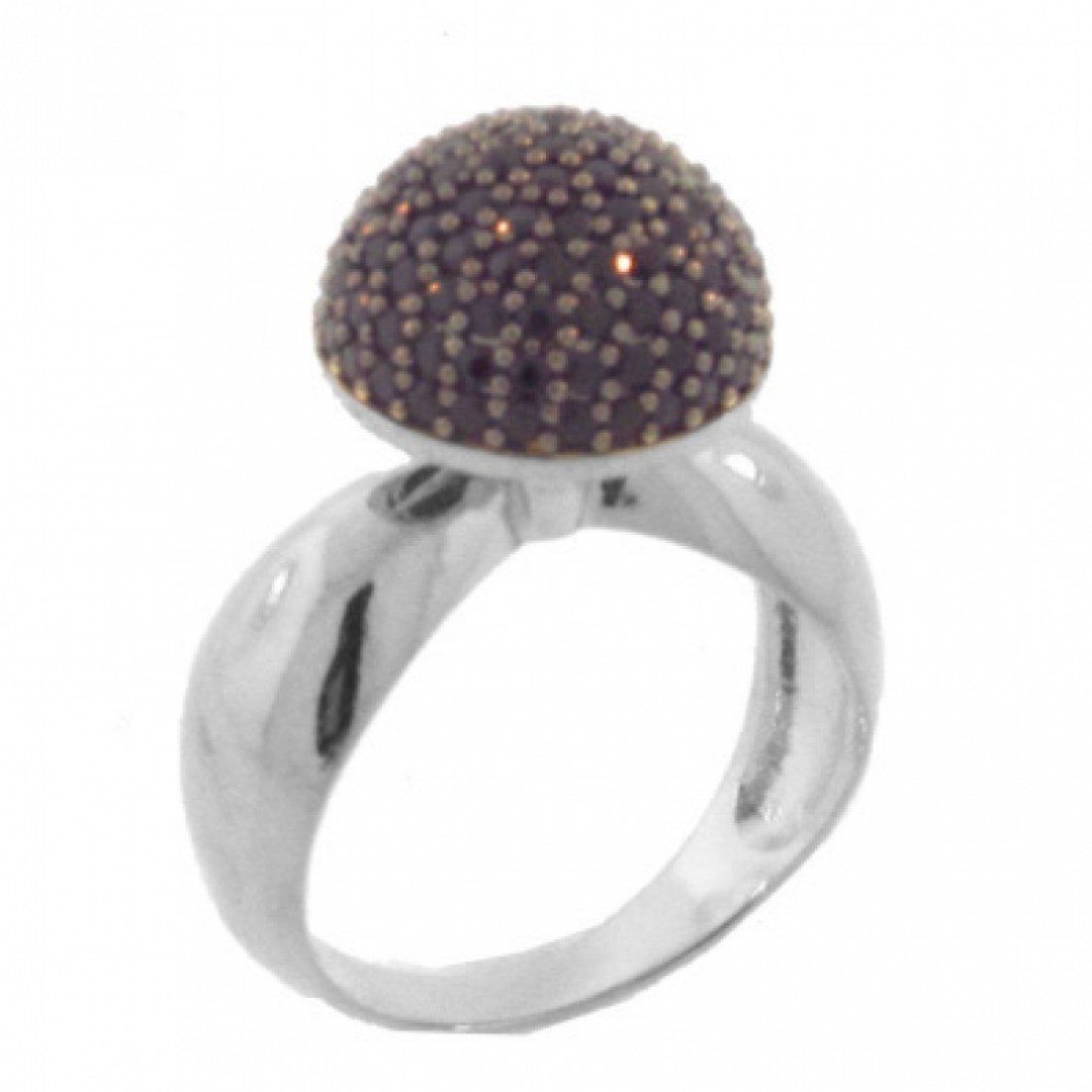 Anel meia esfera zirconia negra, prata com banho de ouro...