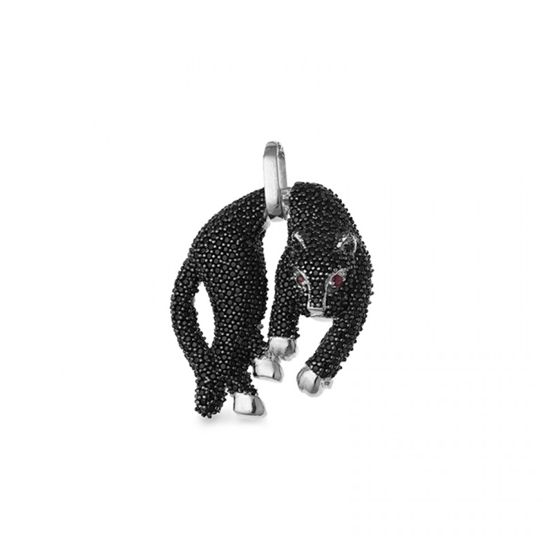 Pingente pantera grande zirconia negra e olhos vermelho rubi, prata com banho de ouro. 1620325..