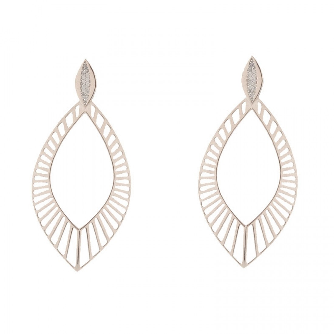 Brinco folha vazada lisa com zirconia cristal, prata com banho de ouro...