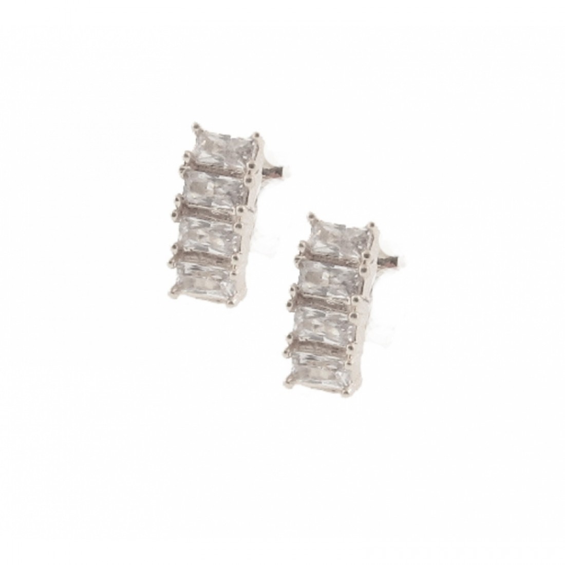 Brinco pequeno 4 baguetes cristal, prata com banho de ouro. 151613..
