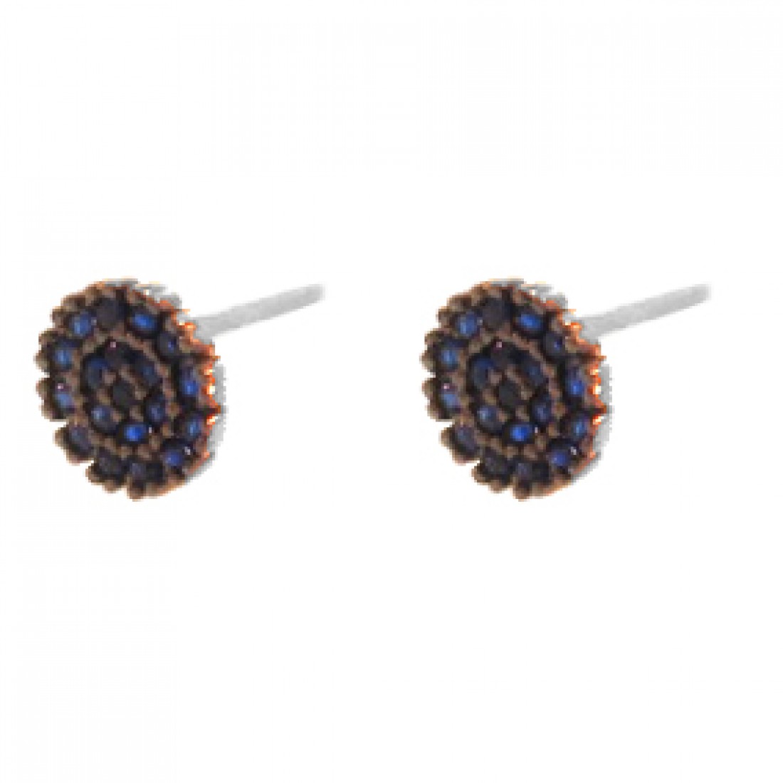 Brinco pave redondo pequeno zirconia azul safira, prata com banho de ouro...