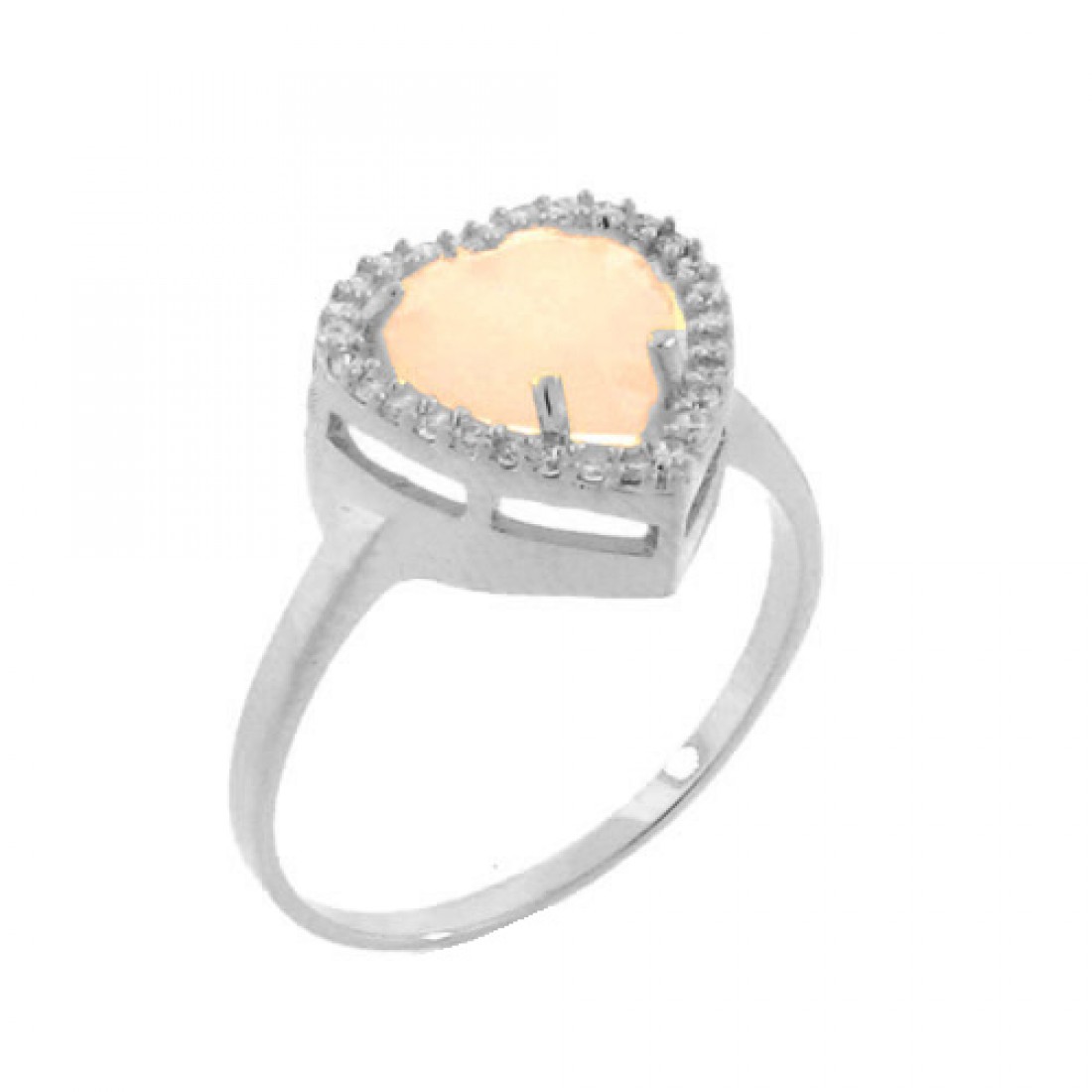 Anel coracao pedra maior rosa leitoso com zirconia cristal em volta, prata com banho de ouro...