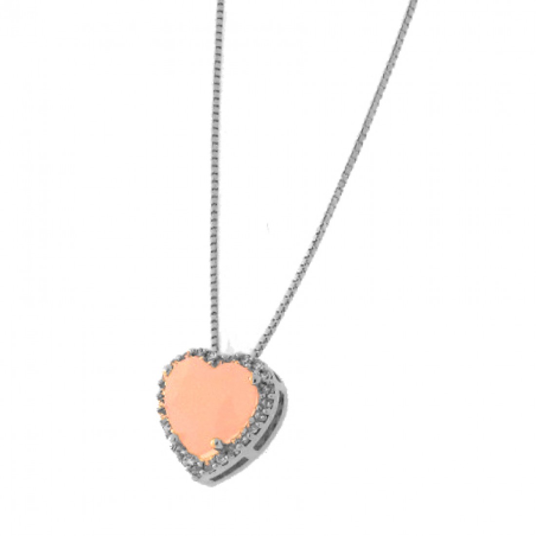 Colar coracao pedra maior rosa leitoso com zirconia cristal em volta, prata com banho de ouro...