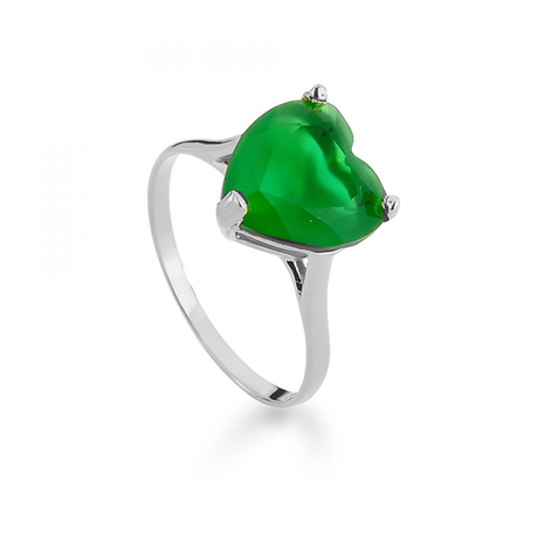 Anel coraco verde esmeralda, prata com banho de ouro. 140084..