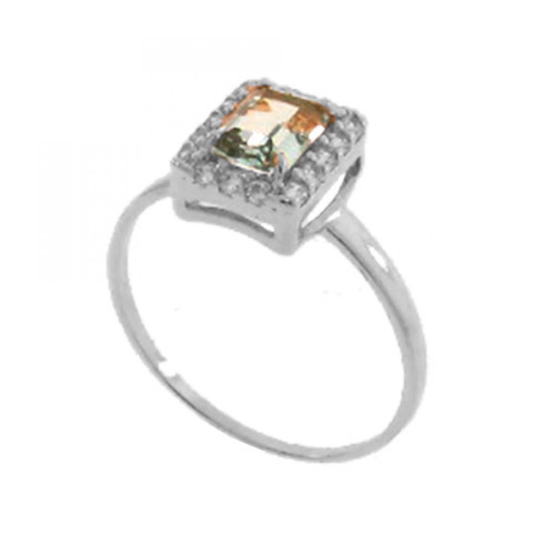 Anel meia alianca fina zirconia cristal, prata com banho de ouro. 140879..