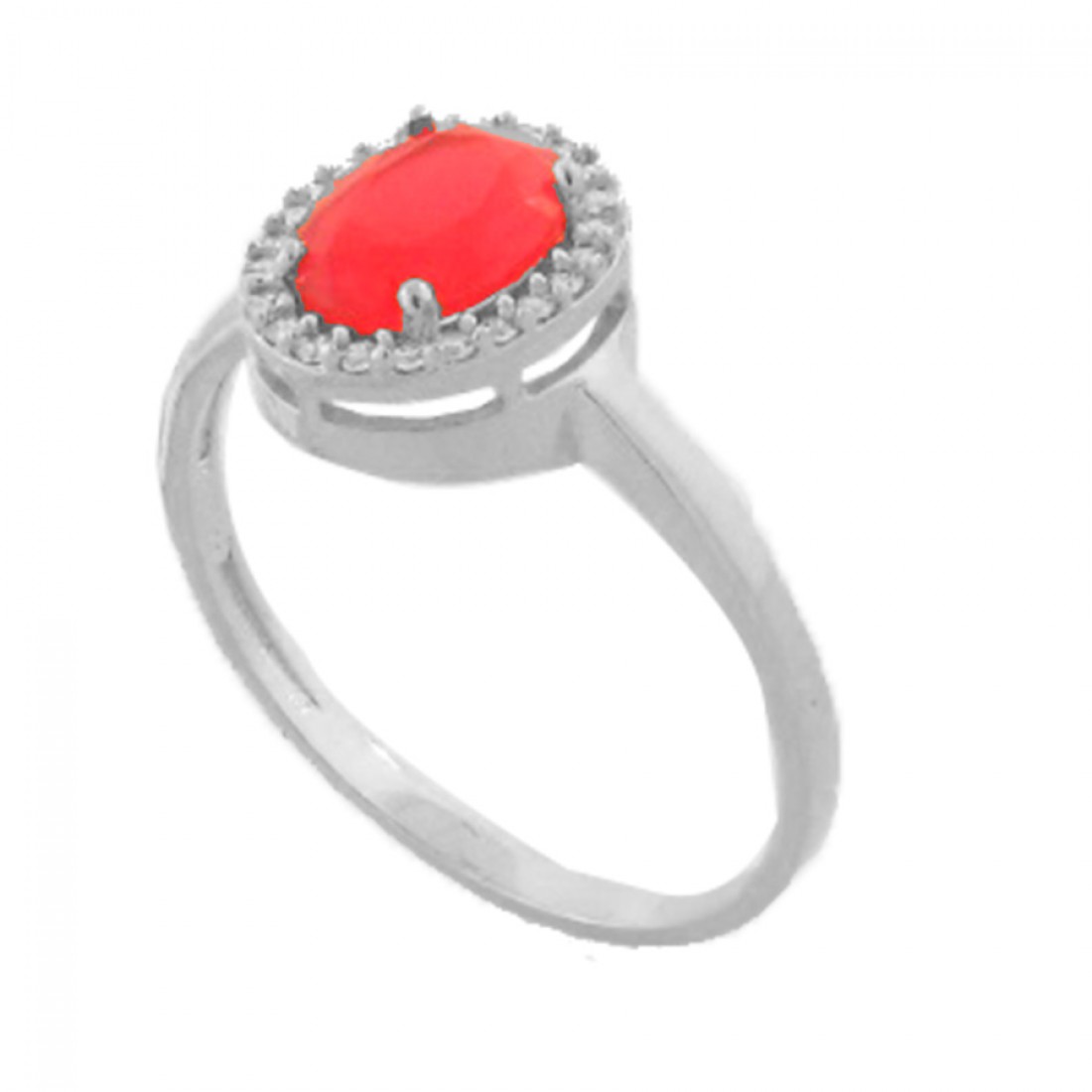 Anel oval pedra maior vermelho rubi com zirconia cristal em volta, prata com banho de ouro...