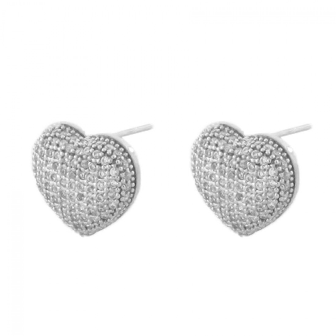 Brinco coracao abaulado zirconia cristal, prata com banho de ouro...