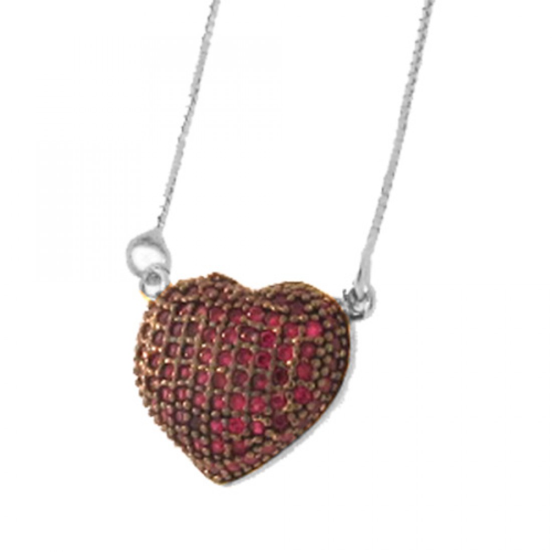 Colar coracao abaulado zirconia vermelha, prata com banho de ouro...