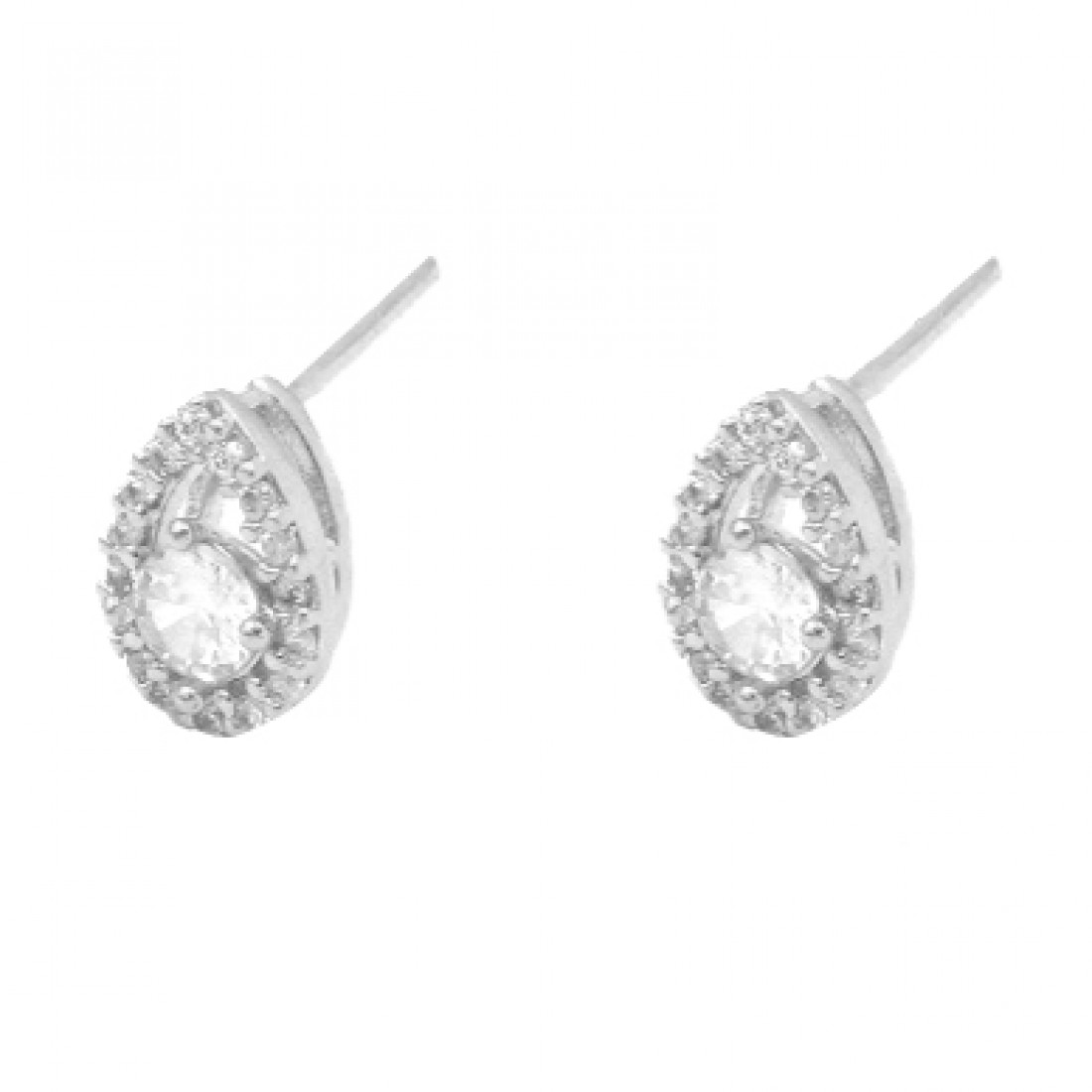 • Brinco gota vazada com zirconia maior cristal no meio. 9x6.5mm, prata. 3530070