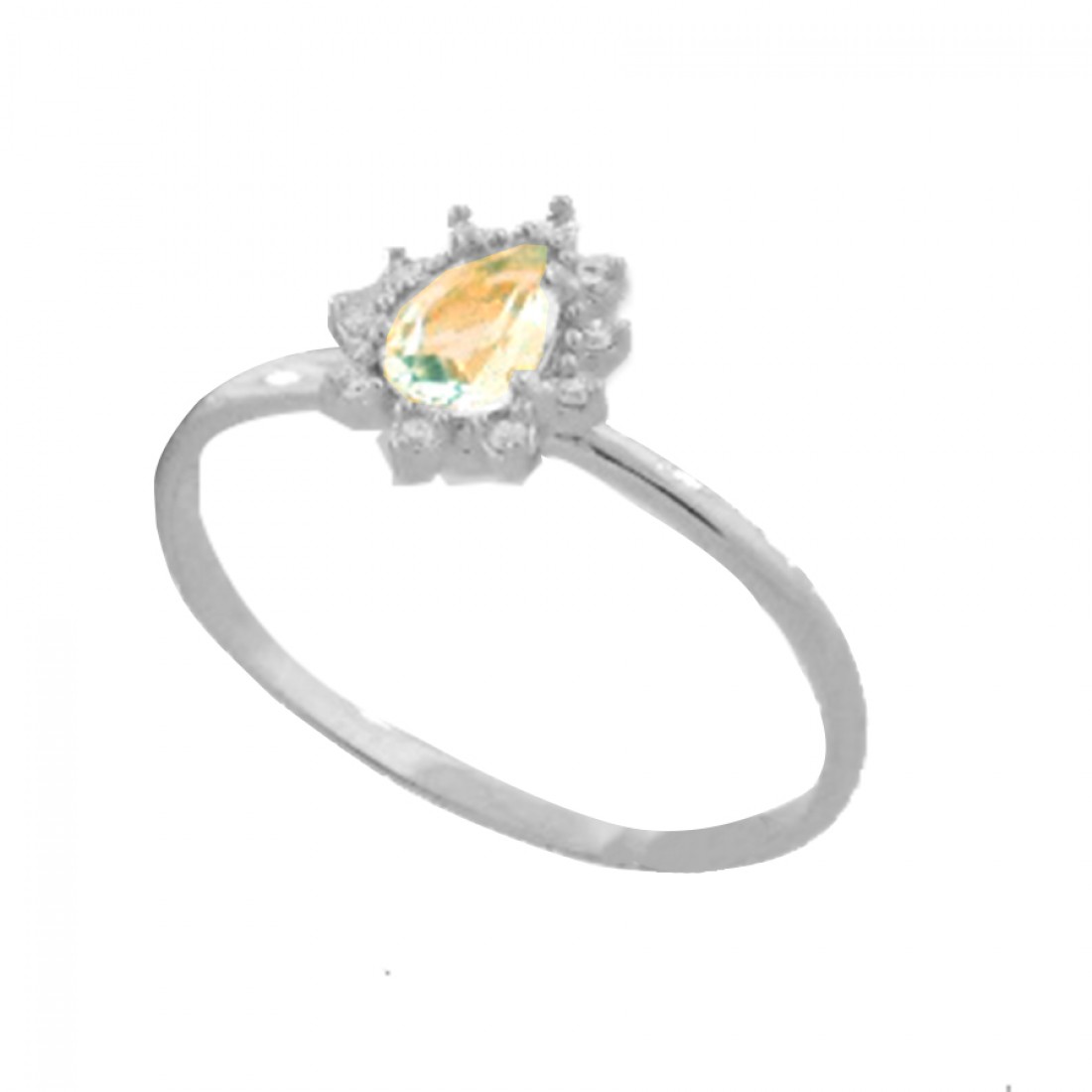 Anel solitario gota azul agua marinha e zirconia cristal em volta. 1430051..