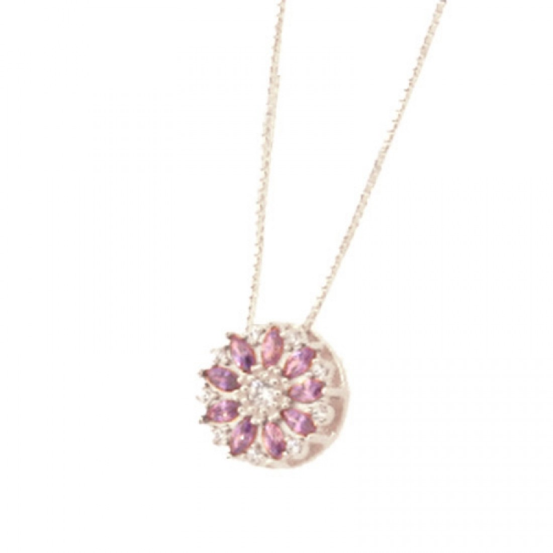 Colar flor navete lilas com miolo zirconia cristal, prata com banho de ouro...