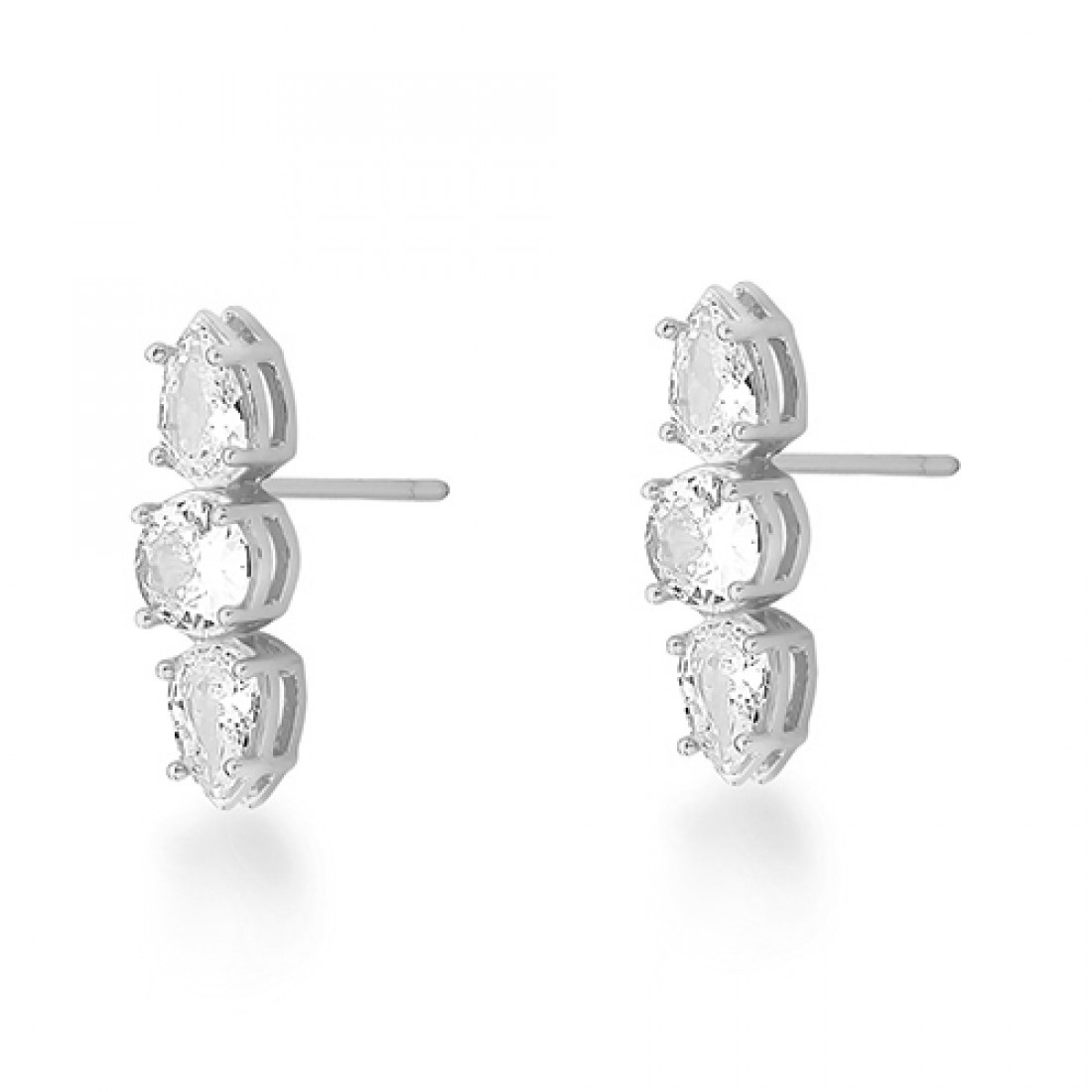 Brinco centro pedra cristal e pontas gota cristal, prata com banho de ouro. 1530210..