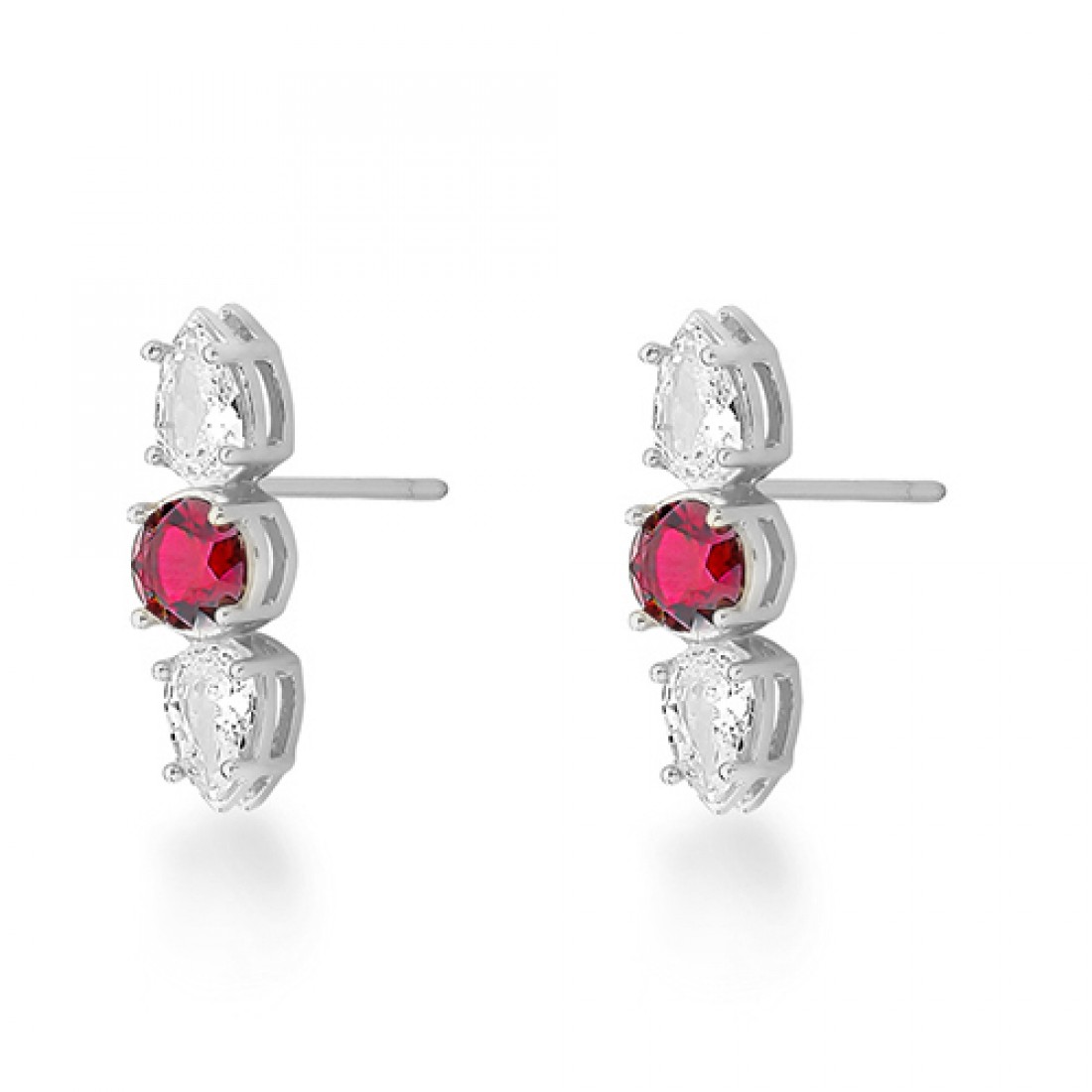 Brinco centro pedra vermelho rubi e pontas gota cristal. 1530210..