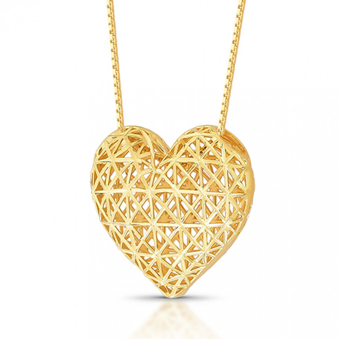 Colar coração diamantado maior todo vazado 23x28mm. Correte 45cm. ..