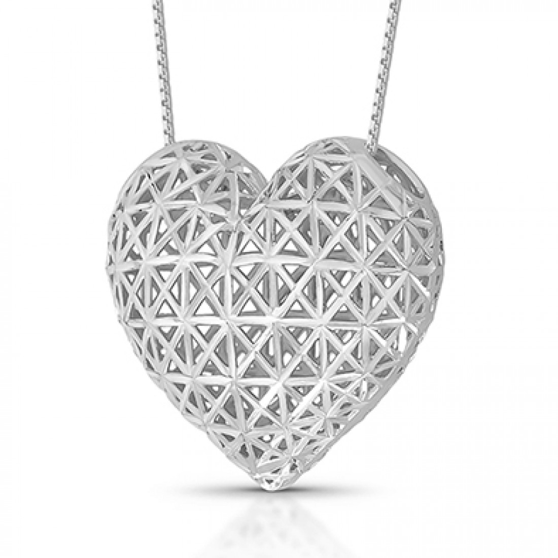 Colar coração diamantado menor todo vazado 19x21mm. Correte 45cm. Prata. 363556M..