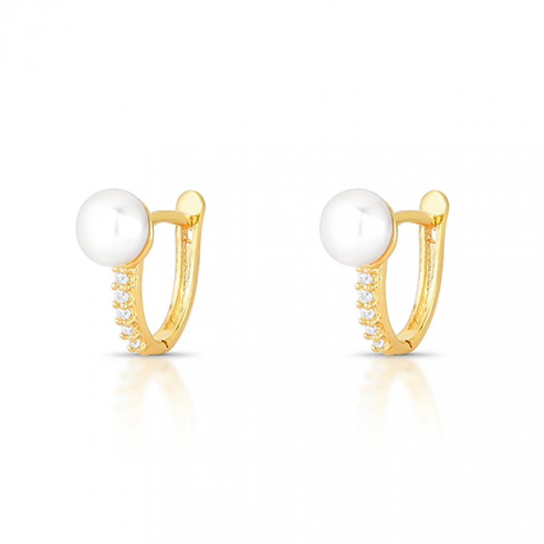 Brinco argola pequena ova 14mm, com perola de 6mm e zirconia cristal na frente. 3520600..