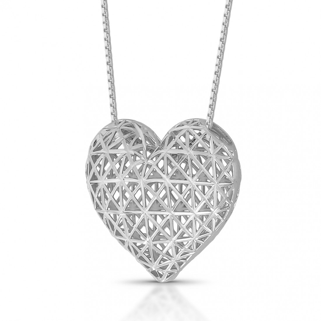 Colar coração diamantado maior todo vazado 23x28mm. Correte 45cm, Prata. 363556G..