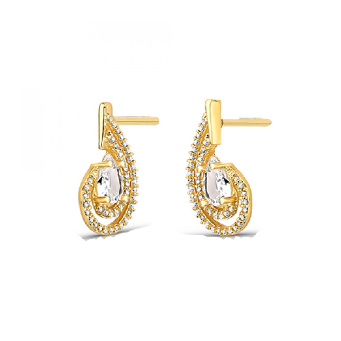 Brinco gota, com pedra cristal 4x6mm, zirconia cristal em volta, prata. 3520500..