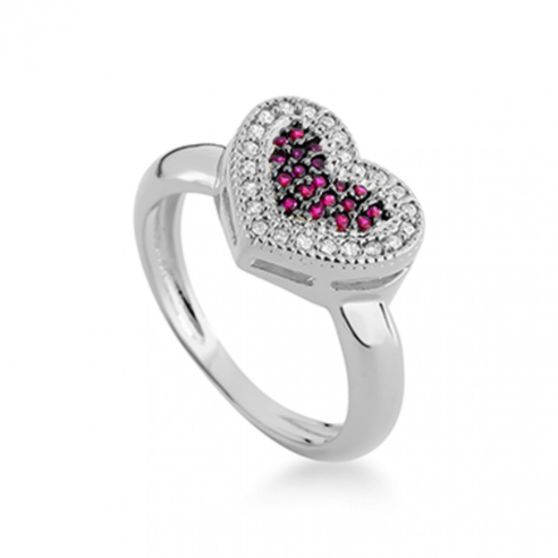 Anel coracao zirconia vermelha dentro e cristal fora. 141533..