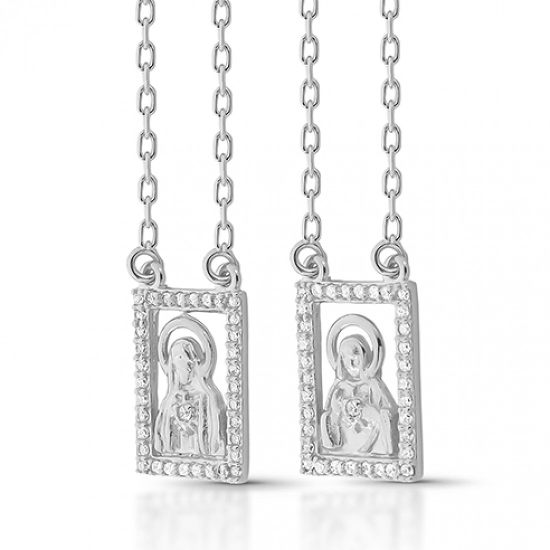 Escapulario Nossa Senhora do Carmo e Sagrado Coração retangular 15x10nn zirconia cristal. 162059..