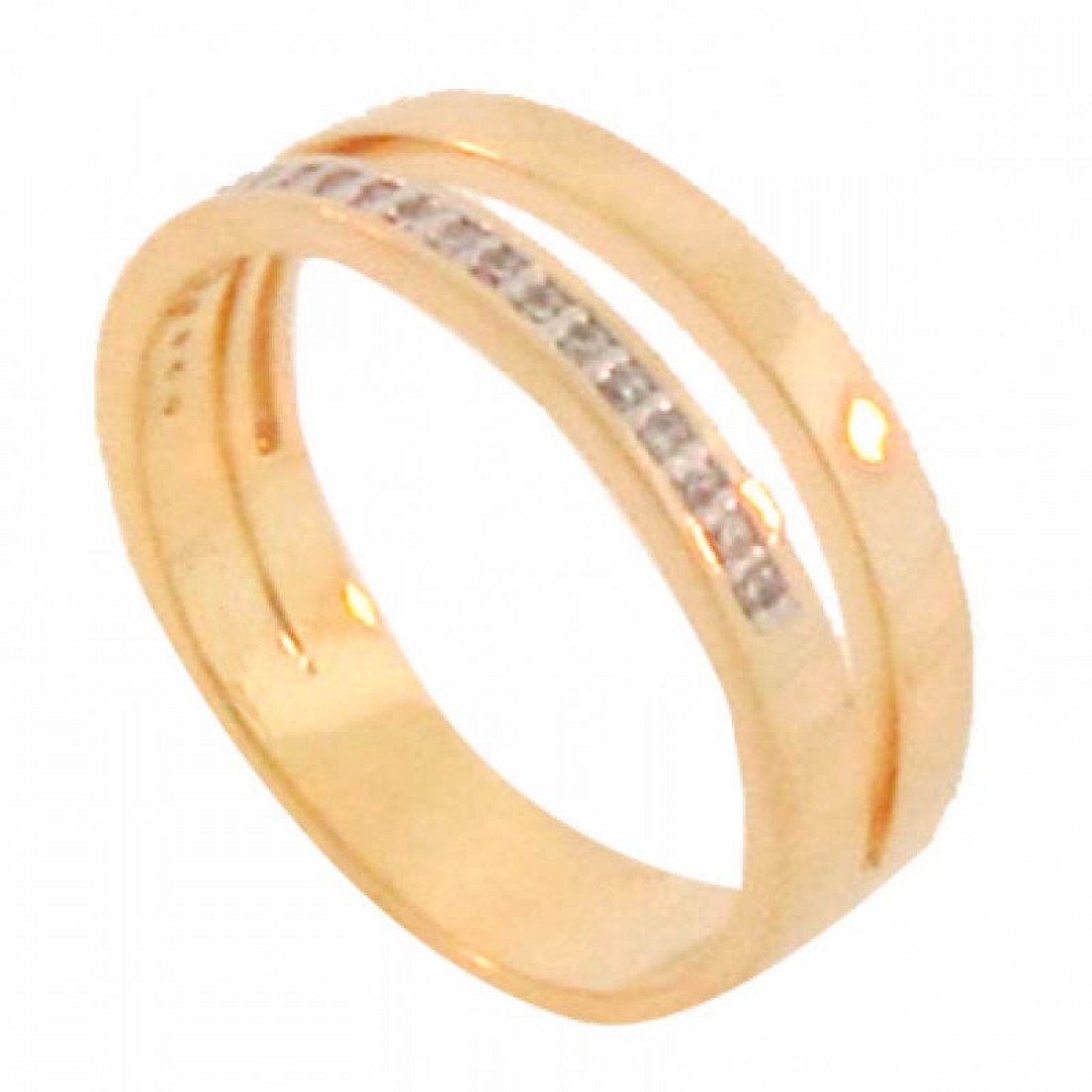 Anel meia alianca fina zirconia cristal, prata com banho de ouro. 140879..