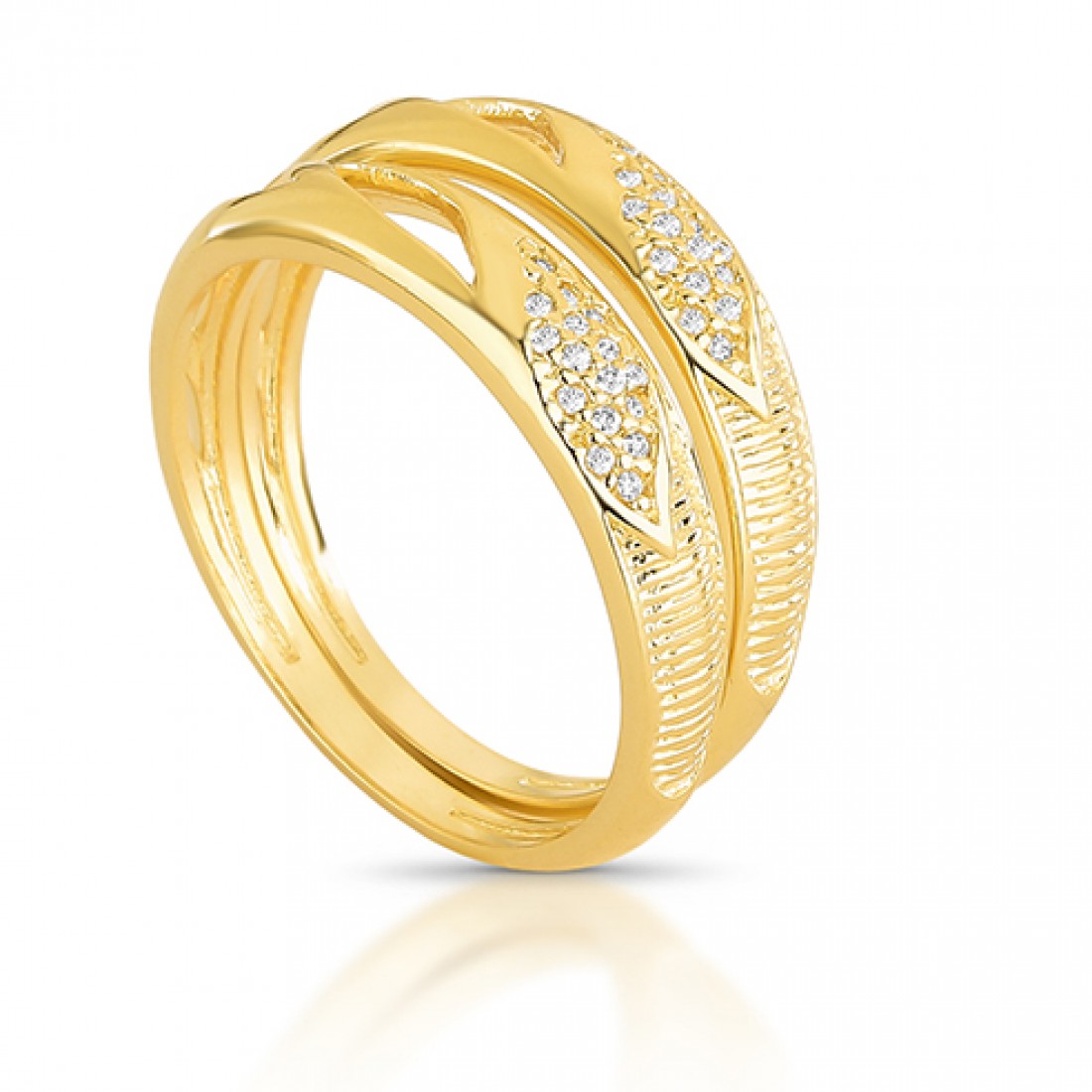 Anel meia alianca fina zirconia cristal, prata com banho de ouro. 140879..