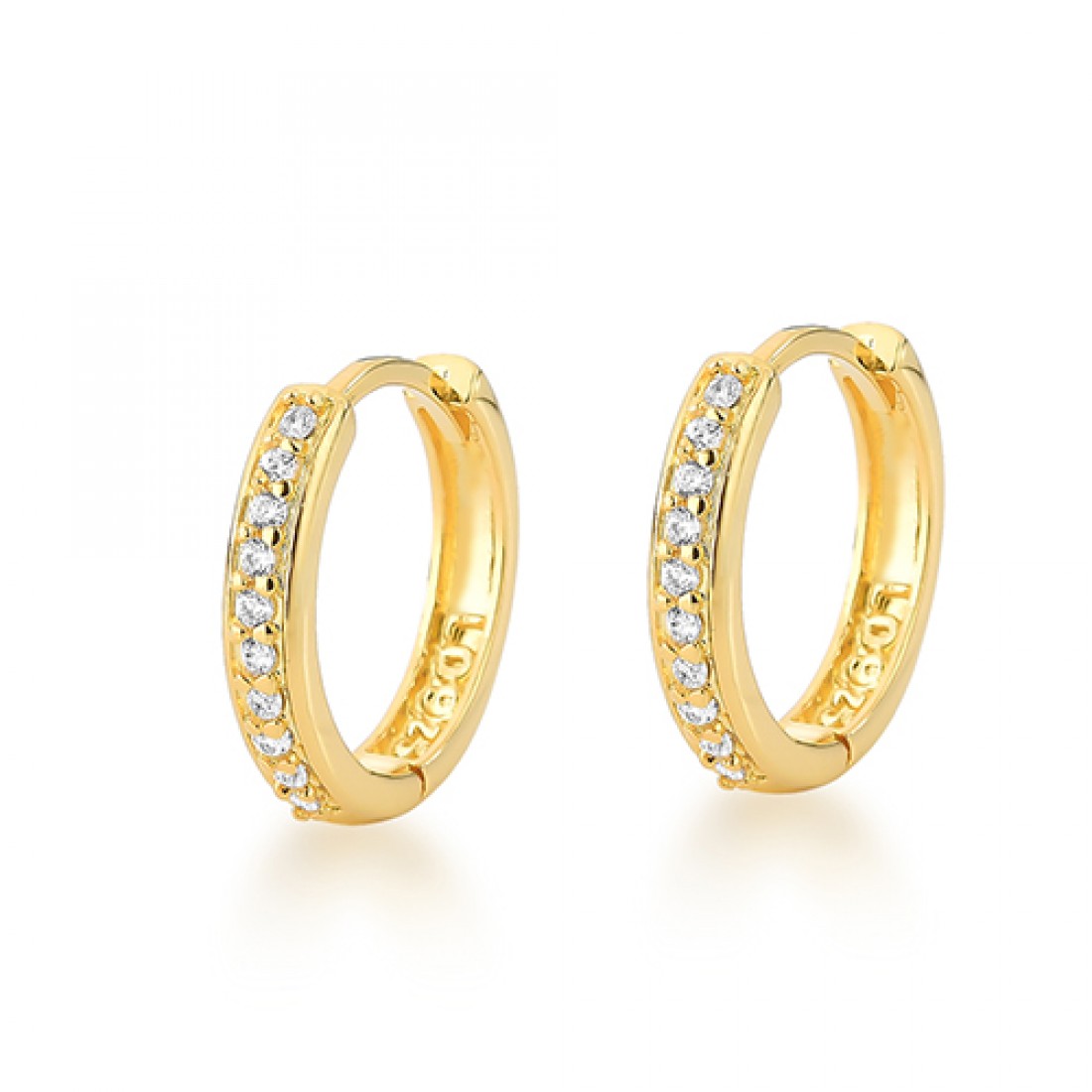 Argola pequena maior zirconia cristal na frente, prata com banho de ouro. 1520410G