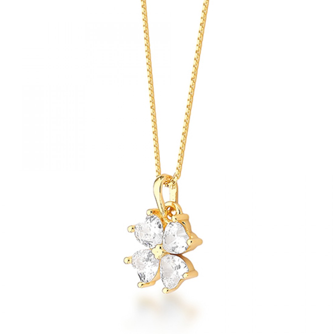 Brinco trevo 4 coracoes cor cristal, prata com banho de ouro. 1535340..