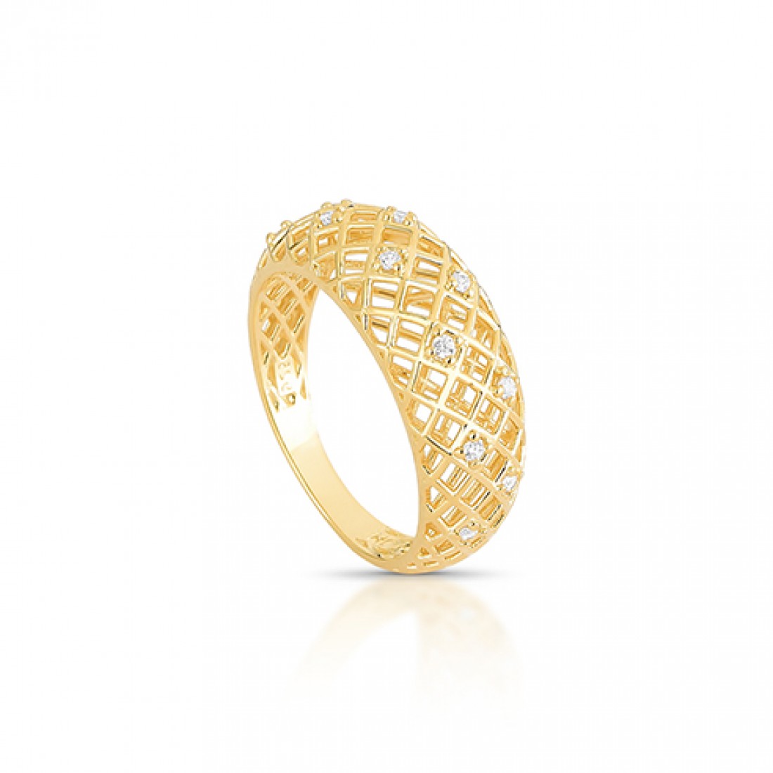 Anel meia alianca fina zirconia cristal, prata com banho de ouro. 140879..